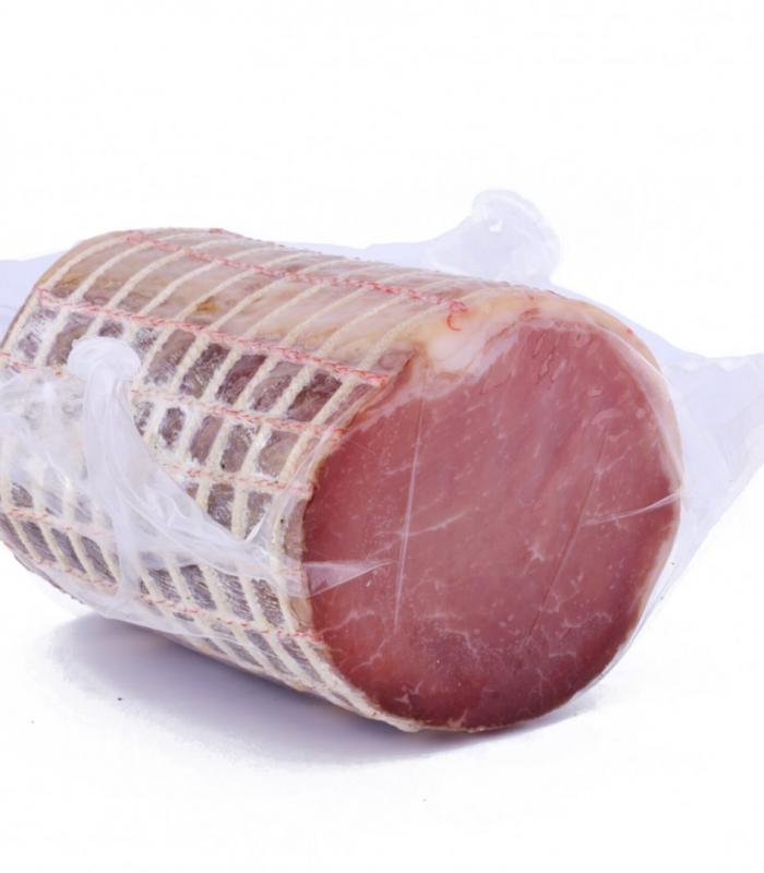 The boneless pork loin is one of the most valuable cuts of the animal. Visually it is immediately recognizable due to the almost absence of fatty parts and the dark color that the meat acquires during maturation. After a salting period of a few days with a mix of sea salt and pepper, it is washed with red wine, flavored and wrapped in "slaughter" paper which allows the meat to maintain its characteristics over time.